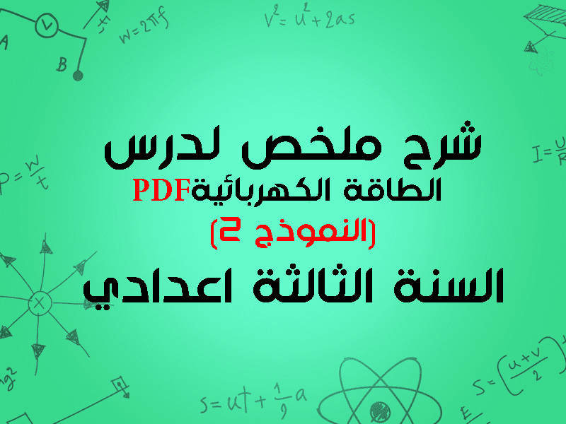شرح درس الطاقة الكهربائية للسنة الثالثة اعدادي (النموذج2)